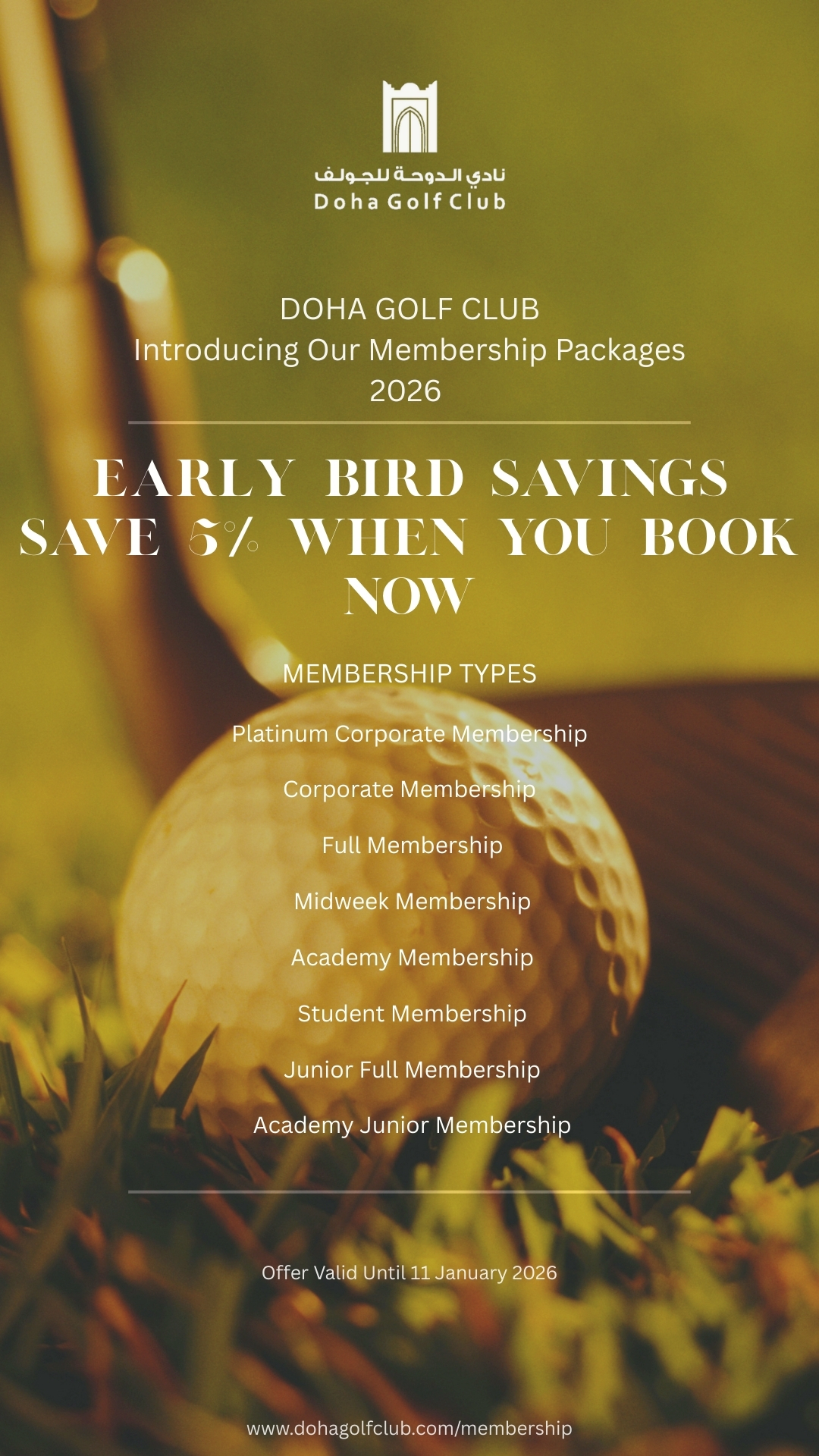 T: +974 4496 0715 | info@dohagolfclub.com | P.O Box 13530 Doha,Qatar | www.dohagolfclub.com